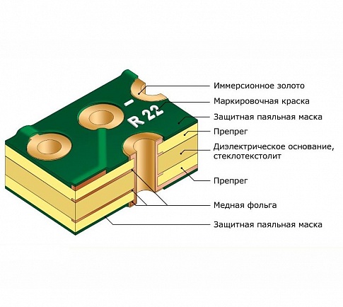 Печатная плата, состоящая из чередующихся слоев изоляционного материала с проводящими рисунками на двух и более слоях, между которыми выполнены требуемые соединения.